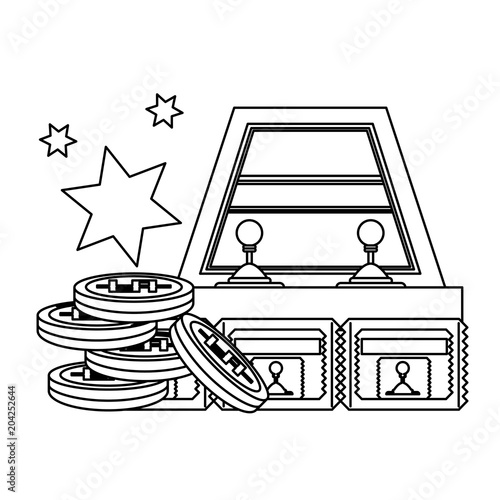 arcade machine and coins over white background, vector illustration