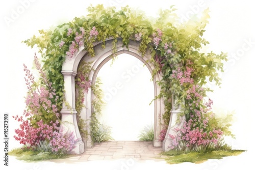 floral arrangement, built structure, floral pattern, architecture, illustration, floristry, isolated, outdoors, blossom, digital, arbour, wax crayons, flower, garden, growth, nature, crayons, vignetting, floor, green, lilac, paint, plant, white, arch, pink, tree, vine, art, day, arched