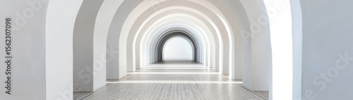 Arched Corridor, Perspective, Minimalism ,white , architecture