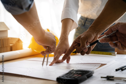 architect or engineer team working on table use drawing tool on the paper plan for business architectural project.