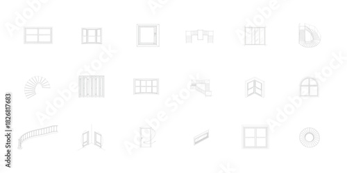 blueprint, design, construction, building, interior design, door, window, staircase, spiral staircase, railing, balustrade, arch, technical drawing, elevation, plan, isometric, perspective, line art, vignetting, white background, isolated, renovation, bricolage, folding door, sliding door, icon, icon, vector, set, signs, symbol, web, computer, cyberspace, buttons, calendar, illustration, communication