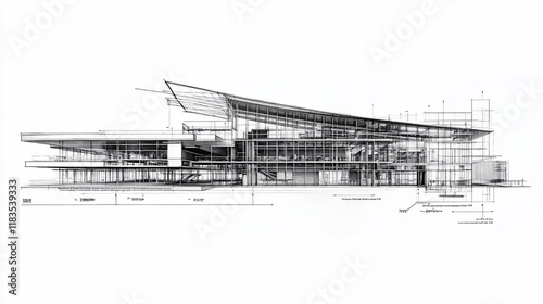 architecture, building, design, blueprint, drawing, vignetting, plan, section, elevation, modern, contemporary, structure, construction, engineering, technical, diagram, drafting, illustration, artwork, graphic, line, detail, scale, measurement, project, building design, perspective, render, greyscale, monochrome, white, black, artistic, visual, image, concept, style, model