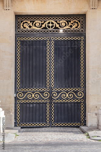 Architectural fragment of the facade of the military school (Ecole Militaire) founded in 1750 in Paris. Central building. Paris, France.