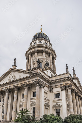 Architectural fragments of French Cathedral (Franzoesischer Dom, 1705) at the Gendarmenmarkt. Berlin, Germany.