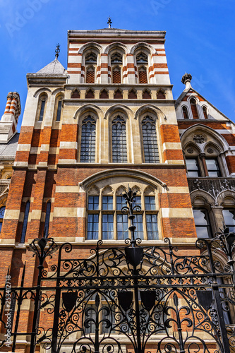 Architectural fragments of Royal Courts of Justice Complex. Royal Courts of Justice in the Victorian Gothic style (or Law Courts, was opened in December 1882) in London, UK.