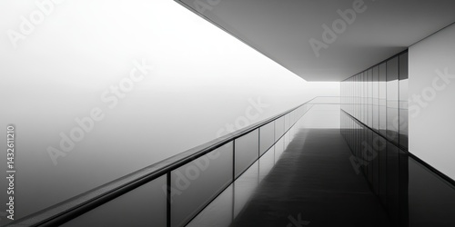 Architectural Minimalism: A Foggy Balcony's Serene Reflection in Black and White Photography