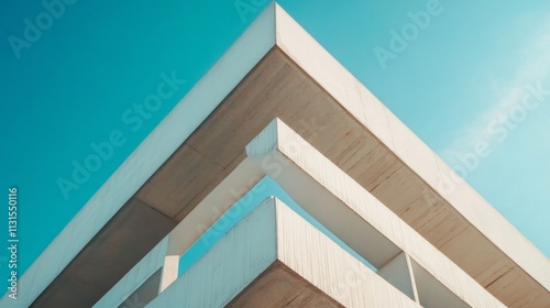 architectural photography. Abstract architecture background. Modern white concrete structure with straight lines and geometric shapes, against a blue sky. geometrical, linear design concept. Minimal