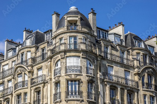 Architecture of Paris: Old French house with traditional balconies and windows. Paris, France.