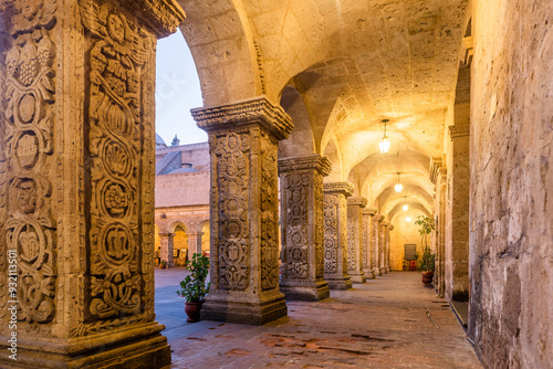 architecture, arequipa, peru, column, old, travel, cloister, historic, history