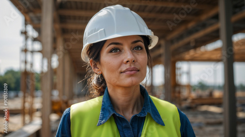 Architetto donna con caschetto protettivo in visita ad un cantiere edile.