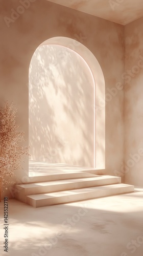 Archway and Steps in a Warm Minimalist Interior with Light and Shadow