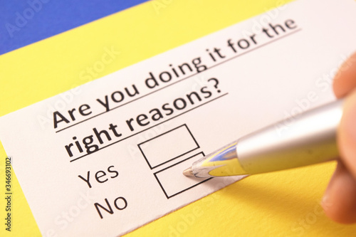 Are you doing it for the right reason? Yes or no?