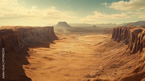 Arid Canyon Landscape with Dramatic Cliffs and Clouds