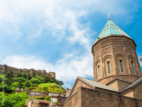 georgia, tbilisi, church, landmark, historical building, orthodox, tour tourism, travel, caucasia, architecture, city, urban, capital, famous, scenic, scene, scenery, georgian, caucasian, beautiful, historic, history, holy, heritage, temple, religious, sightseeing, tour, culture, cultural, christian, dome, christianity, exterior, religion, building, traditional, saint, attraction, sacred, armenian, apostolic, fortress, blue skies, brick, cross