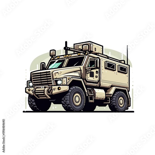 Army protected, armored off-road vehicle. Cartoone picture.