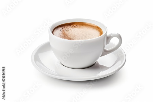 Aromatic espresso coffee fills a classic white cup, resting on a saucer, ready to be enjoyed