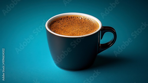 Aromatic Espresso Coffee in a Stylish Dark Cup. A Perfect Morning Coffee Drink for a Great Start.