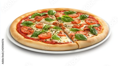 Aromatic Italian Pizza with Fresh Tomato and Basil - A Culinary Masterpiece