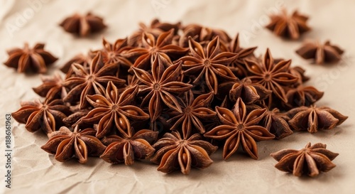 Aromatic Star Anise Spice Pile on Textured Surface.