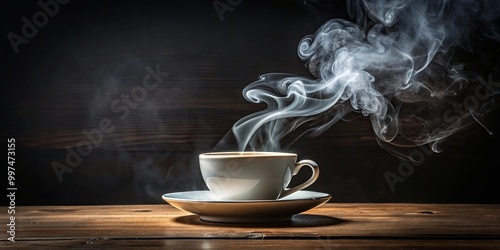 hot drink, steam, cup, saucer, wooden, table, warm, beverage, aroma, hot, drink, caffeine, morning, energy, comfort, relax, cosy, dark, background, still life, light, texture, shadow