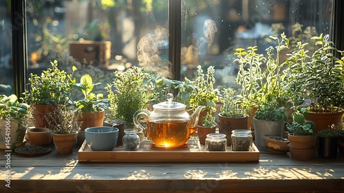 tea, herb, window, sunlight, steam, hot, drink, healthy, natural, morning, afternoon, relaxation, calm, peace, cosy, garden, plant, pot, tray, wooden, warmth, glasses, kettle, aromatic, fresh, delicious, organic, cup, bowl, spice, nature, home, interior, decor, still life, bright, sunny, evening, wellness, comfort, enjoy, relaxing, beautiful, sunshine, herbal, ingredient, health, cookery