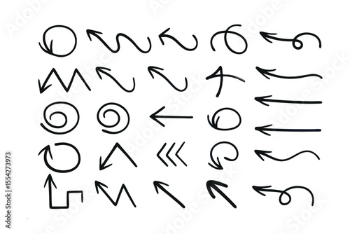 Arrow Design Variety: A selection of diverse arrow designs, each crafted with unique shapes and styles, perfect for guiding the eye and illustrating direction and flow in a creative context.