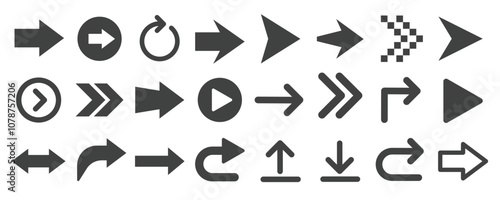 arrow, cursor, icon, black, buttons, circle, collection, design, digital, direction, element, illustration, interface, next, play, right, round, set, signs, symbol, up, vector, web