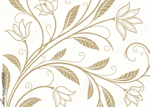 Art deco botanical luxury wallpaper. Elegant vintage vector with hand drawn jungle leaves. Baroque floral pattern. Sophisticated wavy ornament. Gatsby inspired design style.