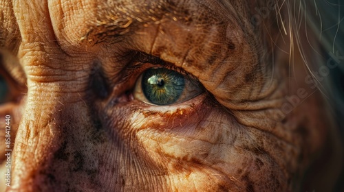 Artfully showing the skin's aging texture and natural beauty of wrinkles and blemishes.