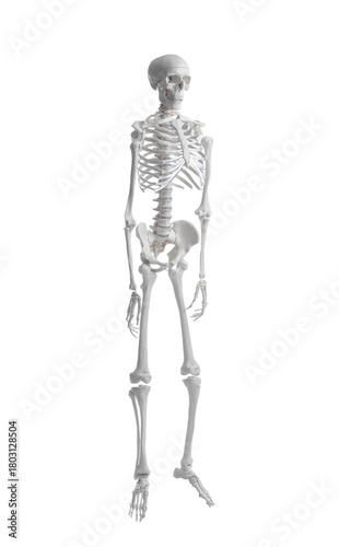 Artificial human skeleton model on white background