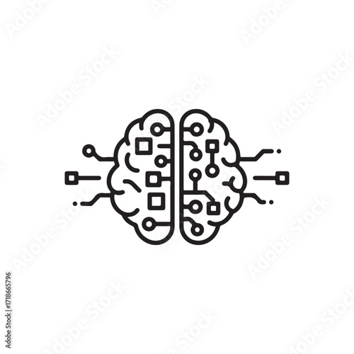 artificial intelligence brain chip in black on white, AI-generated