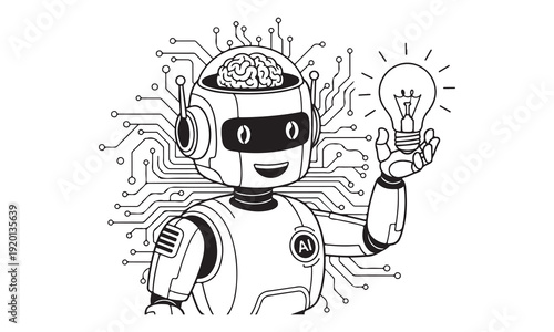 artificial intelligence, ai, technology, robotic, robot, innovation, automation, computer chip, brain, circuit, digital, coding, programming, android, electronic, algorithm, line art