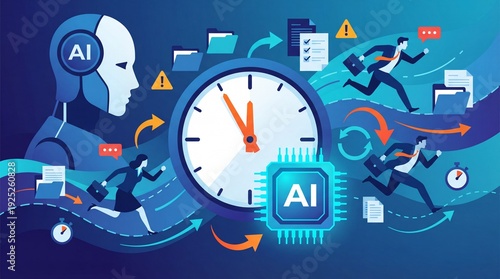 artificial intelligence, workload, pressure, time, multitask, productivity, automation, management, ai, business, stress, deadline, efficiency, technology, corporate, office, employee, workflow, datum, digital, transformation, innovation, overload, burnout, optimization, process, future, industry, strategy, performance, organisation, task, schedule, clock, chips, algorithm, manpower, modern, tech, illustration, concept, icon, signs