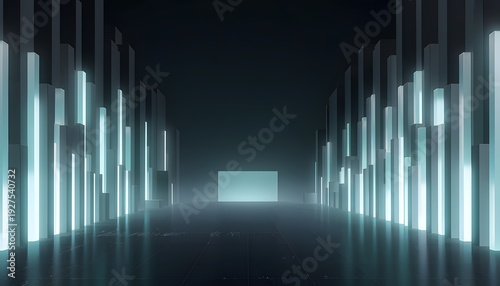Artificial Intelligence Light Canyon with Vertical Luminous Strips and Futuristic Background