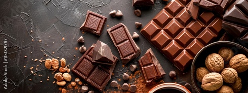 chocolate, bar, nut, artisan, epicure, dessert, slate, surface, decor, aesthetic, bold, indulgent, inviting, textured, modern, stylish, delicious, natural, organic, elegant
