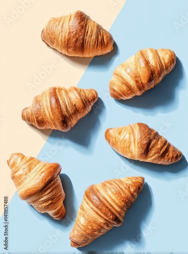 Artisan Croissants: A delightful arrangement of freshly baked, golden-brown croissants, capturing the essence of culinary artistry and the irresistible allure of classic French pastry.