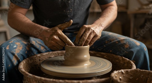 Artisan Hands Shaping Clay on a Potter's Wheel: A Masterful Demonstration of Pottery