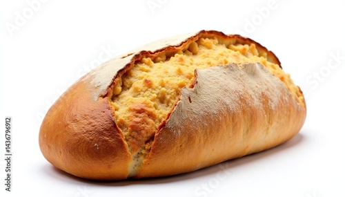 Artisanal bread, crusty loaf, white background, bakery, tasty