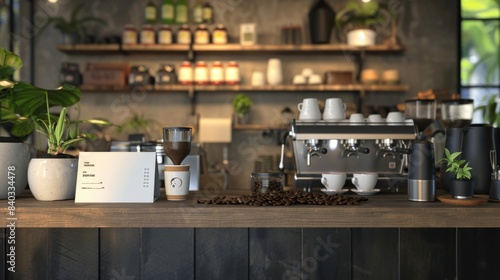 Artisanal Coffee Barista Station with Drip Setup Latte Art and Blank Business Cards Premium Specialty Caf Concept for Professional Branding and Quality Beverages