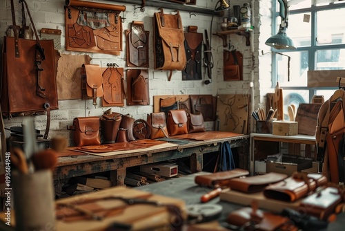 Artisan's Studio Featuring Handmade Leather Items in Progress - Creative Workspace for Craftsmen