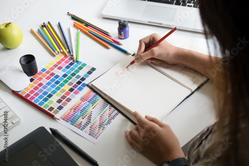 Artist creative graphic designer working on creative desk.