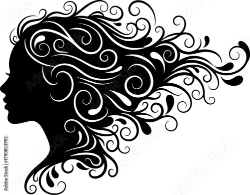 silhouette, abstract, curly hair, artistic, woman, head, face, coiffure, design element, graphic, illustration, modern, elegant, beauty, fashion, stylised, outline, minimalist, creative, bold, dynamic