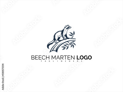 Artistic Beech Marten Logo Design for Elegant Branding. Clean Black and White Vector for Nature-Inspired Labels and Ethical Product Identity Concepts.