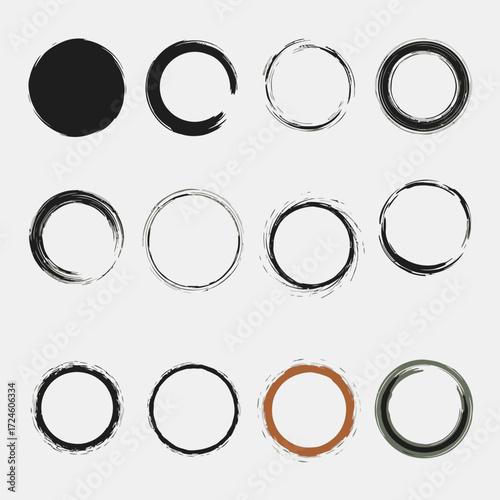 Artistic Brushstroke Circles, Abstract Design, Digital Illustration, Creative Background, Minimalist Environment