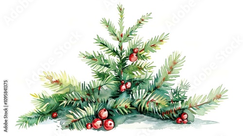 christmas, fir, tree, watercolor, green, evergreen, isolated, white, transparent, cut-out, decoration, holiday, christmas tree, celebration, winter, star, season, ball, gift, pine, illustration, new, ornament, year, present, decorated, new year, merry, vector, branch, berry, red, festive, botanical, design, element, graphic, seasonal, background, texture