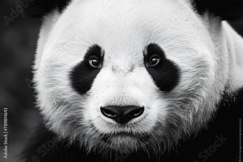 Artistic finesse in monochrome a high-definition photograph of a panda face against a clean white canvas.