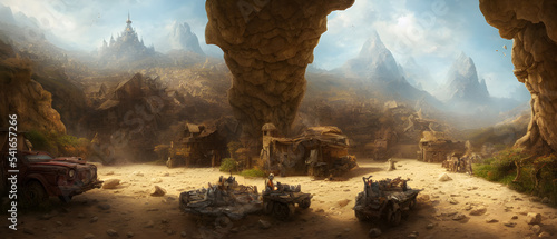 Artistic painting concept of gold mine entrance, illustration painting.