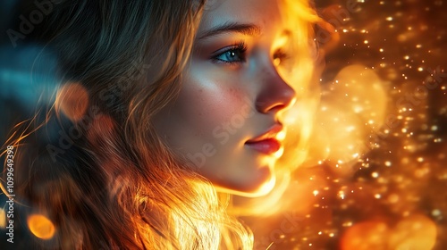 Artistic Portrait of a Young Woman with Sparkling Background