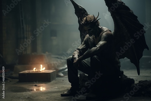 Artistic representation of a fallen angel devil, embodying the complexity of good and evil.