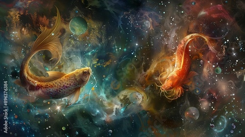 artistic, representation, pisces, zodiac, signs, fish, water, astrological, astrology